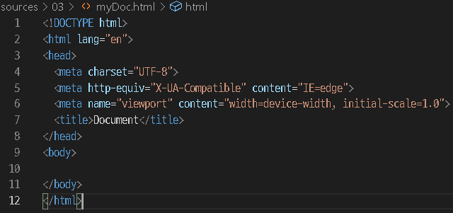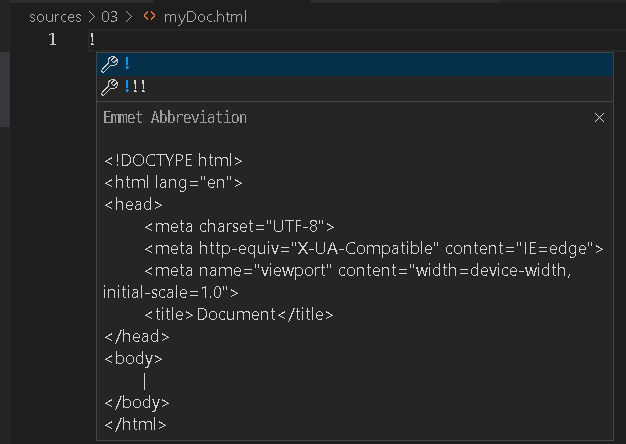 VS Code 에서 !만 치면 기본 구조를 자동 완성 해준다.
