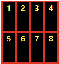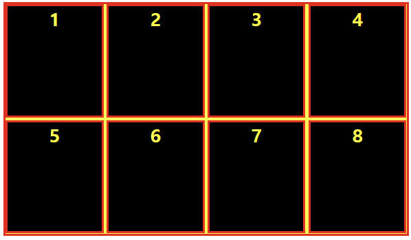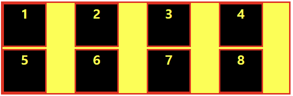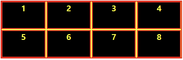 예를 들어 2x4 그리드에 gap을 추가해주면 아래와 같이 gap이 생긴다.