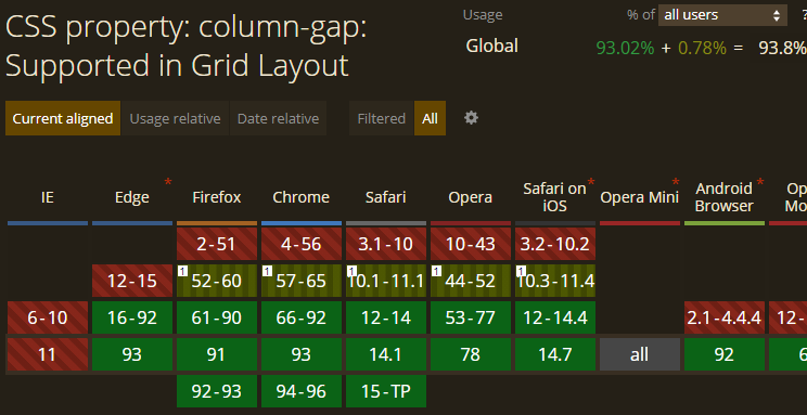 "column-gap" | Can I use... Support tables for HTML5, CSS3, etc