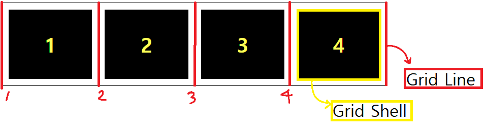 수직선 = 열 격자선, 수평선 = 행 격자선 - Gird Shell