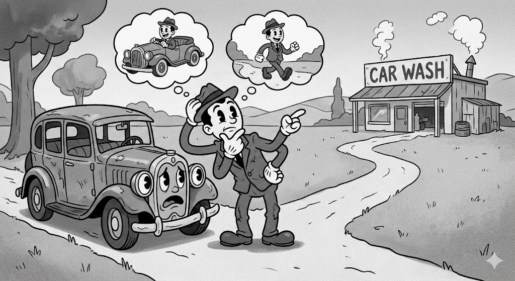맥락을 이해하고 세차장 까지 50m 만 남았는데 차를 끌고가서 세차를 한다 라는 결과를 낼 수 있겠죠?