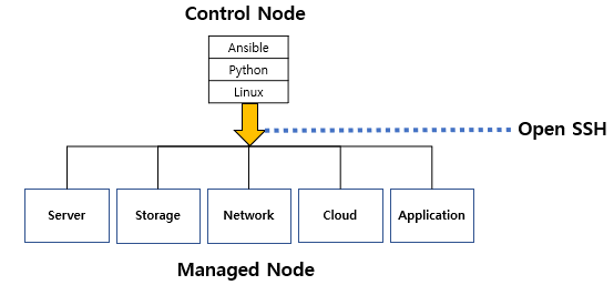 Ansible은 에이전트를 노드에 배포하지 않습니다. 오직 OpenSSH와 파이썬만 관리 노드에 필요합니다.